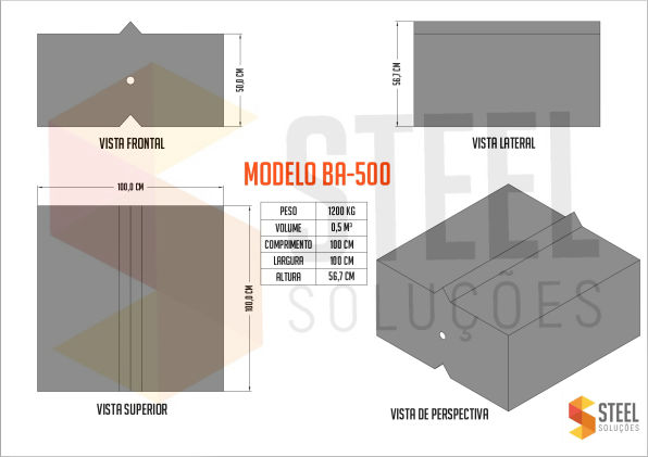 Idealizado pela nossa empresa para montagem de muro de arrimo sob gravidade, teste de ponte rolante, lastro como contrapeso, etc.